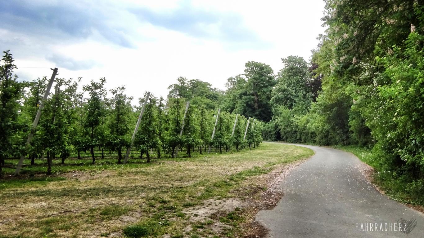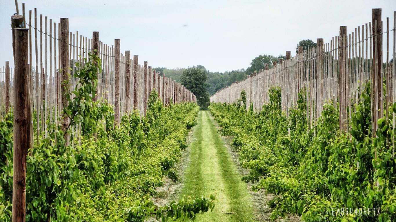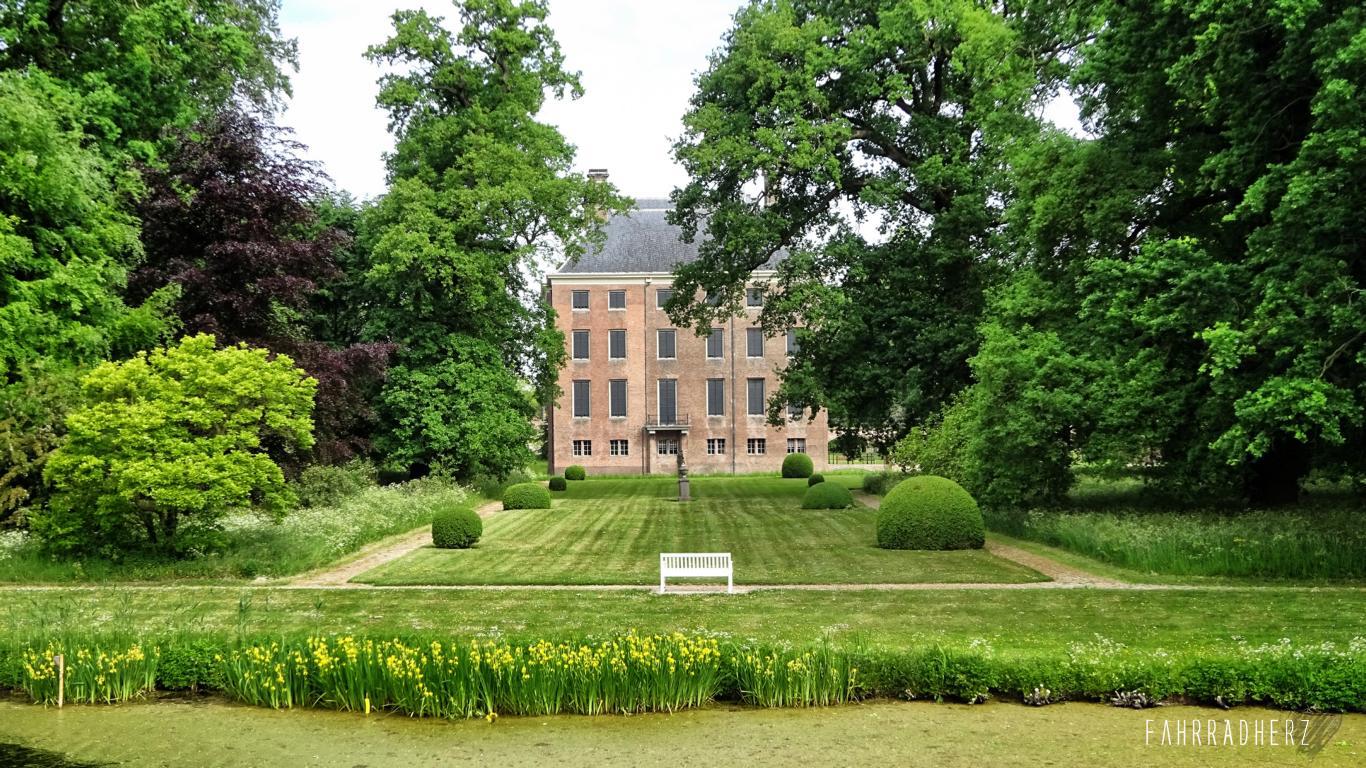 Richtung Norden geht es zum Nederrijn. Der Nederrijn ist eigentlich ein Ausläufer vom Rhein. Obstwiesen, Kleefelder und lange Deichstraßen begleiten mich ein ganzes Stück bevor ich den Nederrijn mit der Fähre passieren kann. Auf den Deichen hat man einen wunderbaren Ausblick über die Felder und über den Schiffsverkehr. Ab und an passiert man eine kleine Pumpstation. Diese sehen in der Region fast überall gleich aus. Die kleinen Pumpstationen oder auch Pumphäuser genannt, verteilen die Bewässerung auf den Feldern, oder schützen im Bedarfsfall vor Hochwasser. Mit dem Überqueren des Nederrijns und einem Fährgeld von ca. 1,00 EUR pro Radfahrer, wechselt nicht nur automatisch die Provinz von Gelderland in Utrecht, sondern auch das gesamte Landschaftsbild.