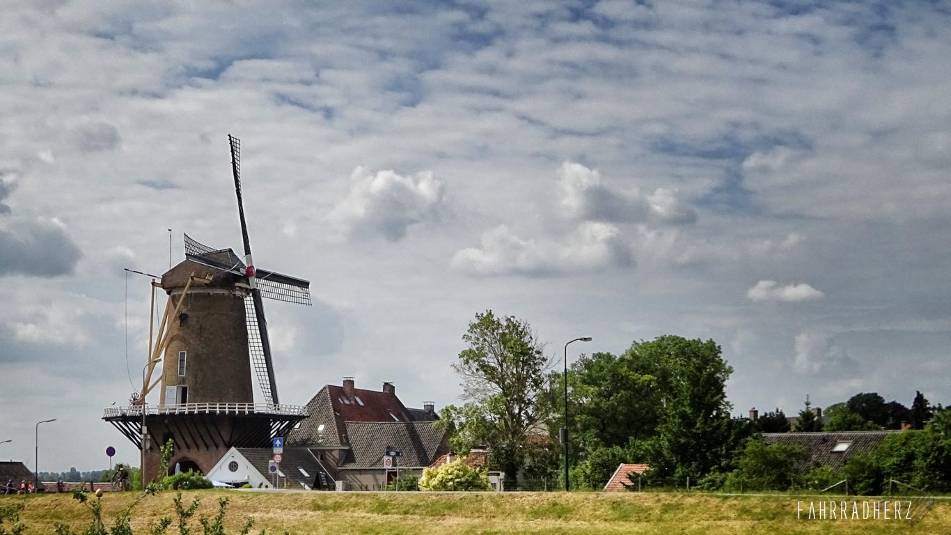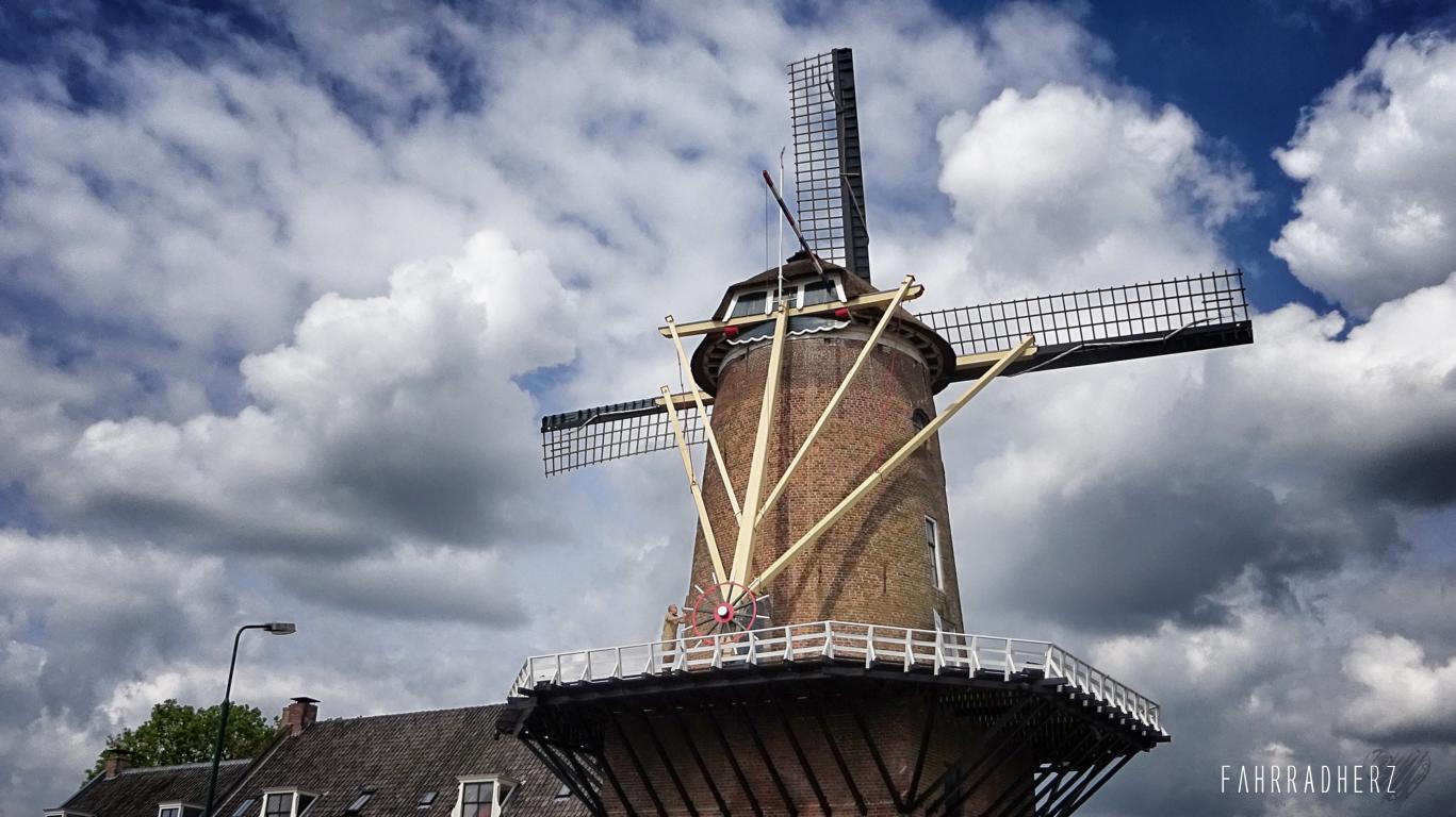 Ich erreiche Wijk bij Duurstede. Schon aus der Ferne wird der Radfahrer durch eine sehr berühmte Mühle begrüßt. Da hier der Nederrijn in die Lek übergeht, heißt diese Mühle ganz einfach „Mühle Rijn en Lek“ Ihre Besonderheit besteht weniger darin, dass sie noch aktiv ist, vielmehr ist es Ihre Lage mit der besonderen Aussicht über den Hafen und den Auen die sie so bekannt macht. Auch ist die Mühle mit dem Auto oder mit dem Fahrrad unterfahrbar. Neben den alten schönen Hafen mitsamt den ansässigen Hausbooten hat Wijk bij Duurstede eine unverwechselbare pittoreske Innenstadt.